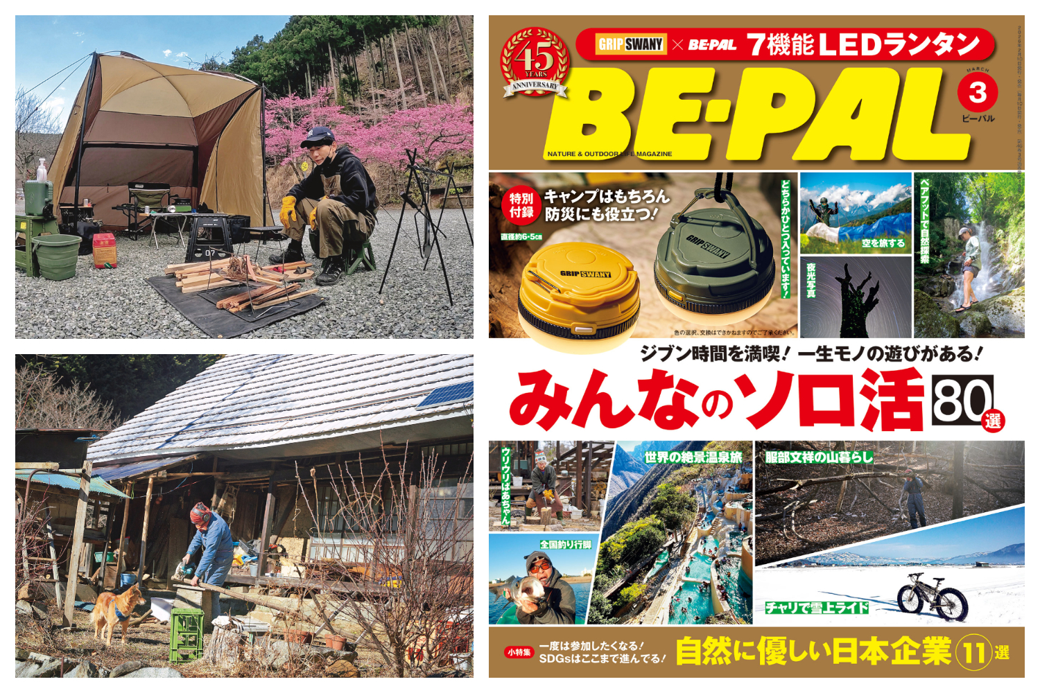 ビーパル3月号付録はグリップスワニーコラボの「7機能LEDランタン」2カラーどちらかが入ってます!
