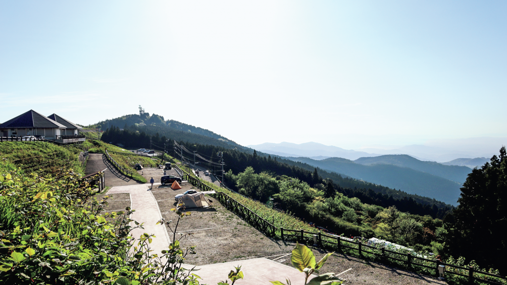 標高870mの山頂にススキの大草原が広がり、秋ともなると多くのハイカーで賑わう生石高原に立地。テントサイトは車両乗り入れ可能な大区画と、バイカー向けの小区画の2種類。全サイトにAC電源が設置されている。