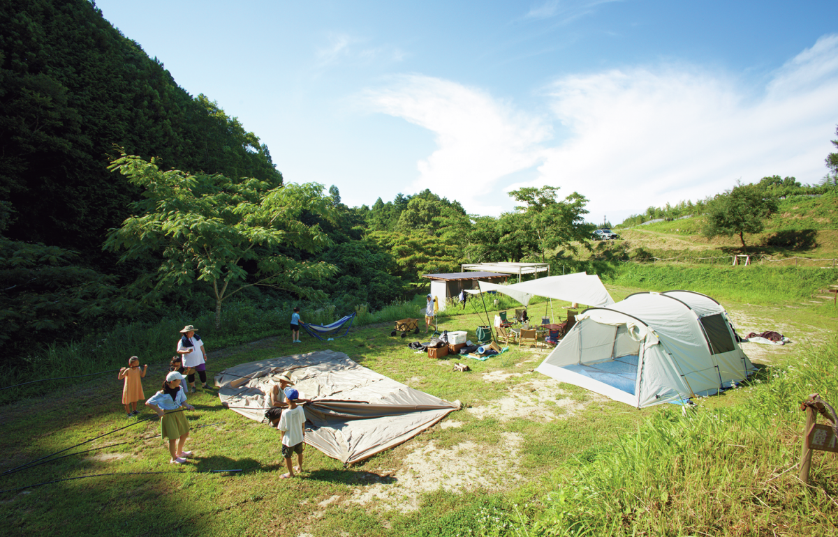 「自然遊びができるキャンプ場を作りたくて、5年前から場所を探していました。必須条件が川遊びだったので、いい感じの川を遡って見つけたのがここです」と管理人の大西新二郎さん。当初は藪に覆われ地形も不明瞭だったが、整備しているうちに棚田だったことが判明したそう。