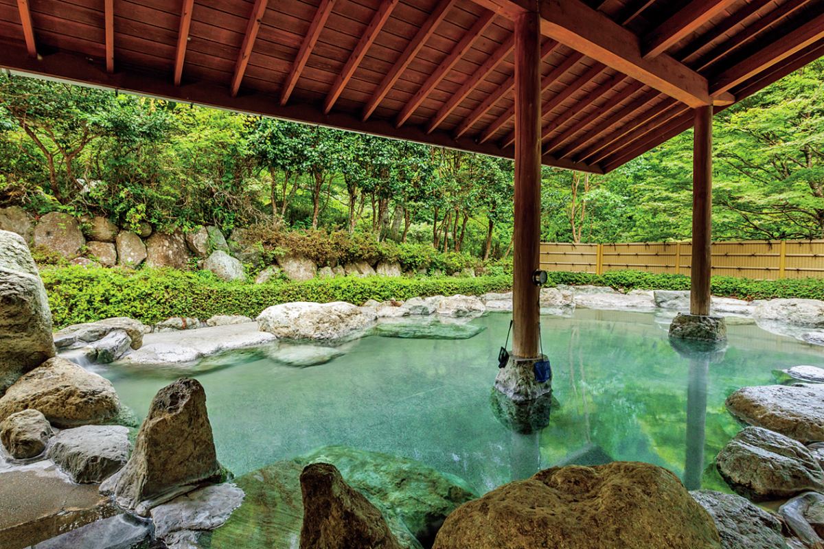 渓流での水遊びも充実していて、カヤック体験は無料。毎日18時半~22時まで渓谷がライトアップし、幻想的な景色が見られる。本格天然サウナも。