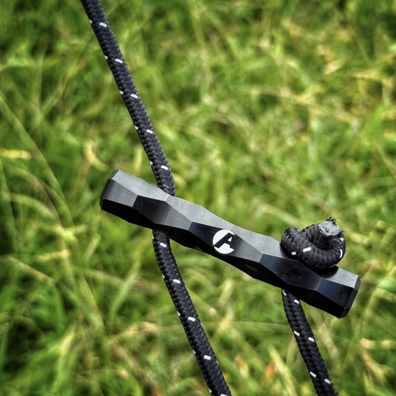 こちらはアシグリップの形状を踏襲したガイロープ用の自在金具「JIZ_A_I」。アシグリップは創業者であるMORINO HIROYUKI氏が2000年頃に製作したカスタムパーツで、いわばブランドの象徴となるアイテムだ。