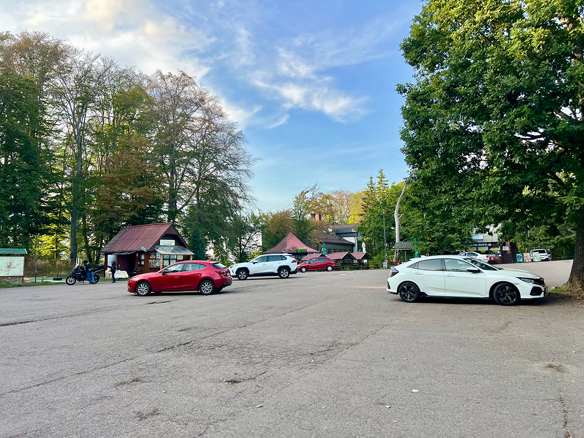 今回は、せっかくなので車で山頂までは行かず、歩いて頂上を目指すことにしました。登山口でもあるMátraházaiの駐車場に車を停め、準備を整えます。周囲には、ホテルやレストラン、カフェにお土産ショップまで揃っていて、賑やかな雰囲気に包まれています。