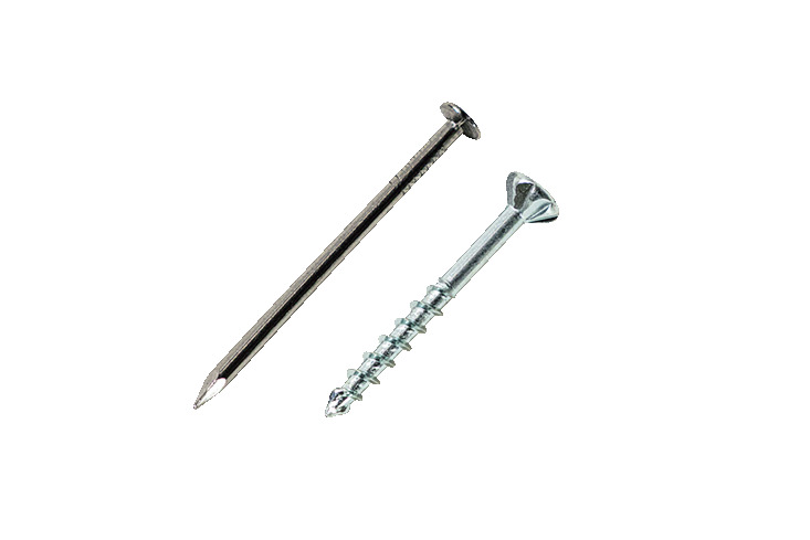 釘は引き抜き方向(縦)への力には弱いといえます。その点、木ねじは溝があって強い。でも横方向の強度は釘が粘りがあり上です。