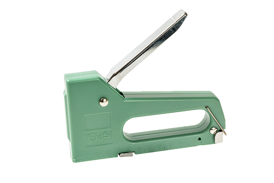 平面にU字の針が打てる強力ホチキス。額縁枠の継ぎ目の固定などに。従来のように使えるタイプも。