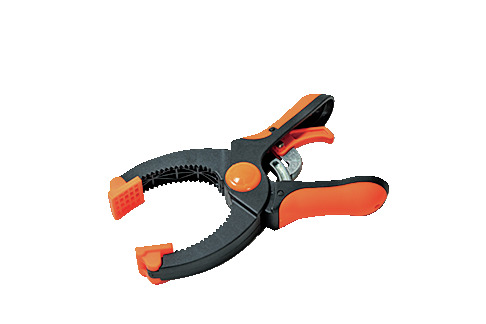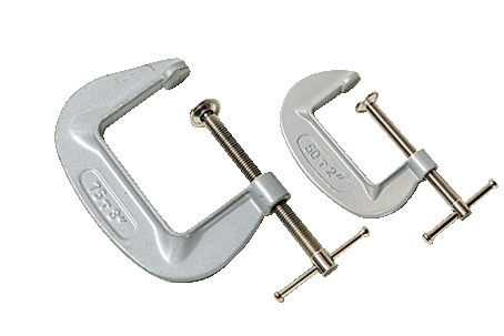 材料が動かないように固定したい場面で挟み込んで使う。洗濯バサミのような形やコの字形のものなどがある。