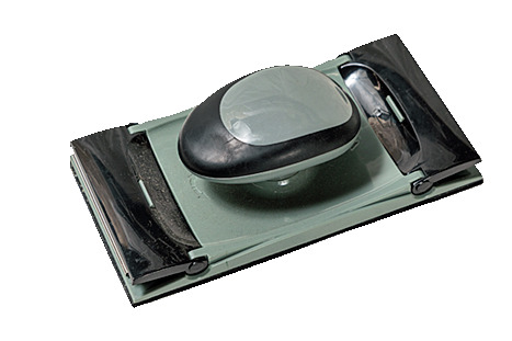 ホルダーに紙ヤスリを取り付けるだけ。素手よりも効率的かつ均一にヤスリがけができる。