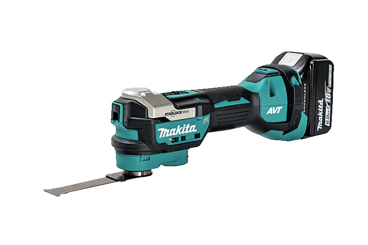 切る、削るといった多様な作業が1台で可能に! 刃部分は左右にスイングし、細かな作業に向いている。