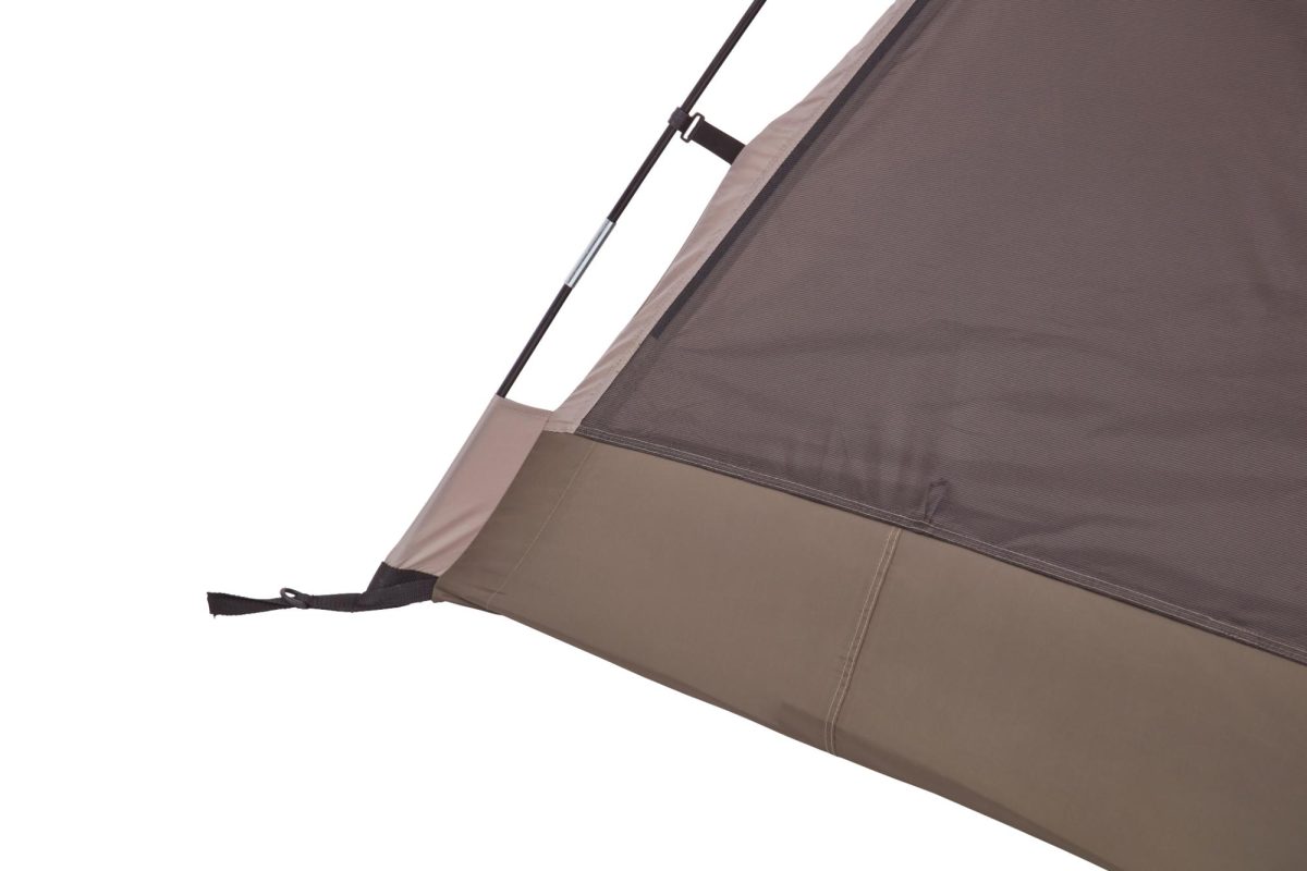 最初にテントを立たせた状態で設営できるため、大型テントに慣れていない人でもスムーズに組み立てられる。