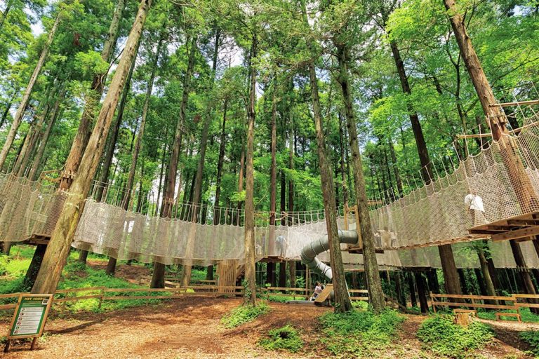 1986年に開園した龍ケ崎市森林公園が、樹上アスレチックやMTBの練習コース、テントサイトなどを整備し、2025年3月にリニューアルしたばかり。自然を体感しながら泊まって遊べる施設として注目を集めている。