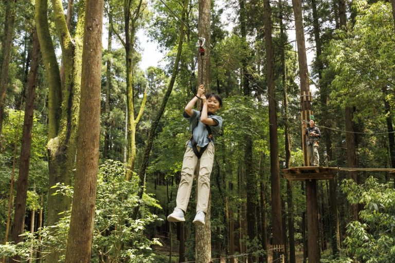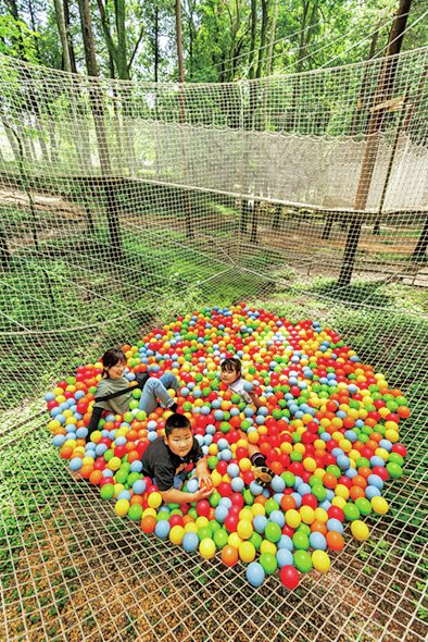 森を最大限に活用したアスレチック「フォレストアドベンチャー」。大人も子供も楽しめる。