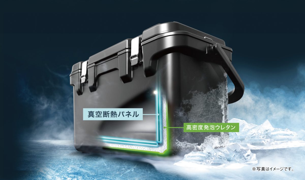 保冷力の秘密は真空断熱パネルと高密度発砲ウレタン。冷蔵庫と同じ技術。