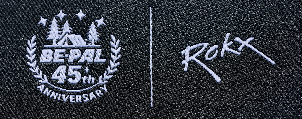 右のヒップポケットには、『BE-PAL』45周年とROKXのコラボタグ。