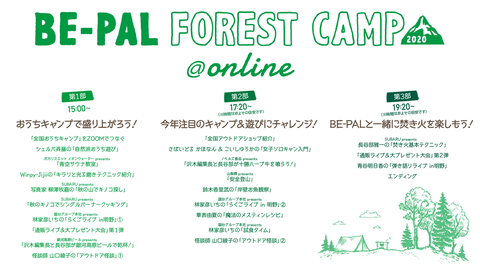 10月3日(土)15時~いよいよ開催!【BE-PAL FOREST CAMP 2020@online】タイムスケジュール発表!