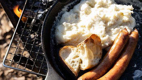 焚き火&スキレットで3分で出来る!乾燥ポテトフレークを使った簡単ポテトサラダ