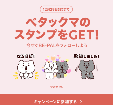 スタンプキャンペーン中!BE-PALとLINEで友だちになろう!
