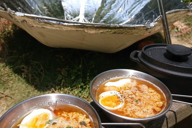 自作ソーラークッカーで作る【太陽チキンラーメンと太陽卵】[読者投稿記事]