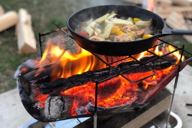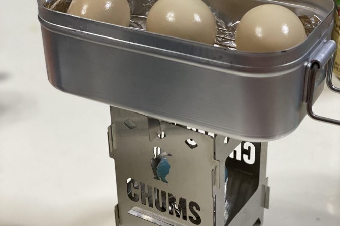 CHUMSソロ用焚き火台で燻玉[読者投稿記事]