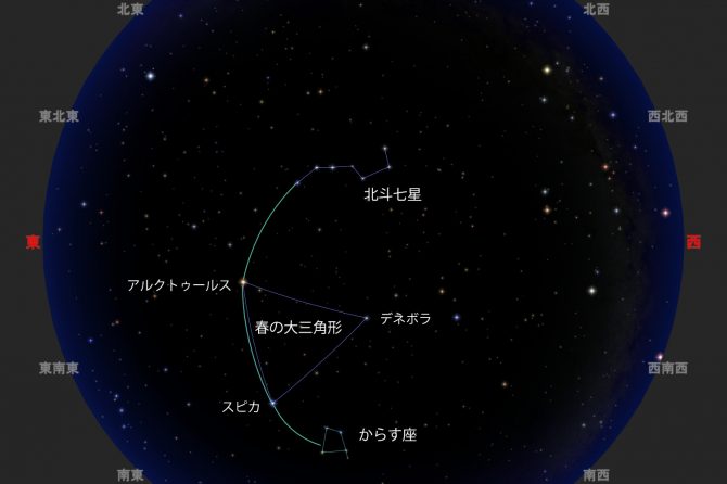 北斗七星から始まる春の大曲線と大三角形の見つけ方