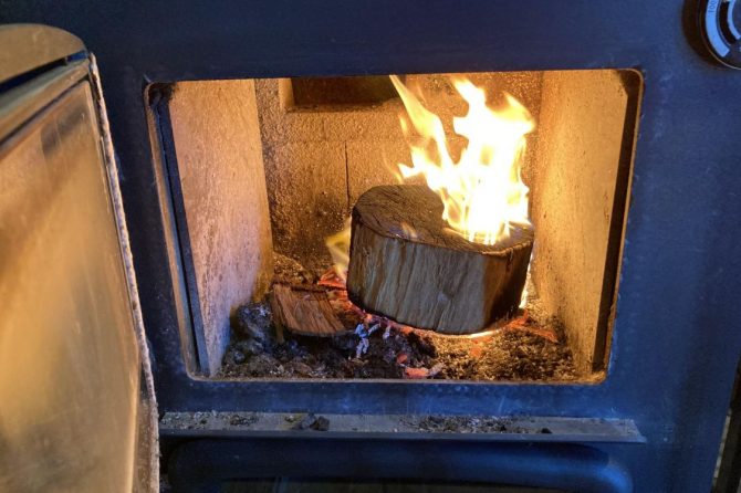 輪切り丸太を薪ストーブで[読者投稿記事]