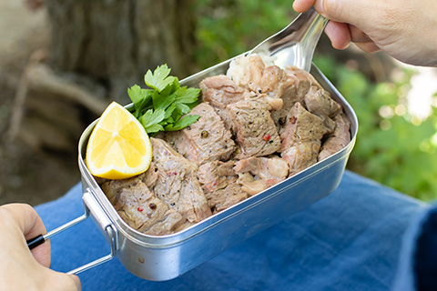 山でもキャンプでも!メスティン&山用フライパンで「黒コショウご飯のステーキ丼」
