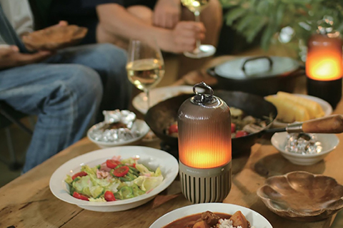 焚き火のゆらぎを再現したスピーカー搭載LEDランタンは、おうちキャンプでも大活躍!