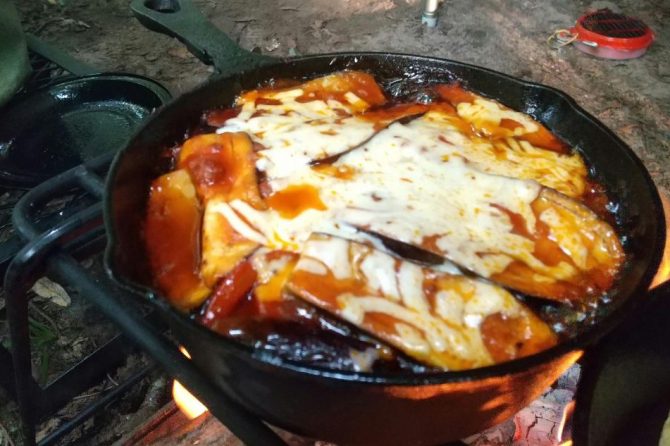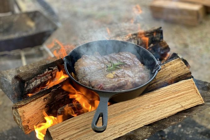 ワイルドにたき火に直接スキレット[読者投稿記事]