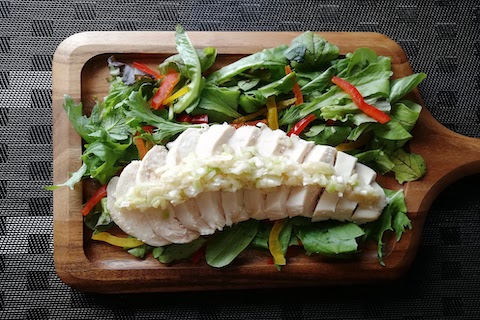 キャンプにおすすめ!メスティンで作るしっとり蒸し鶏のサラダ