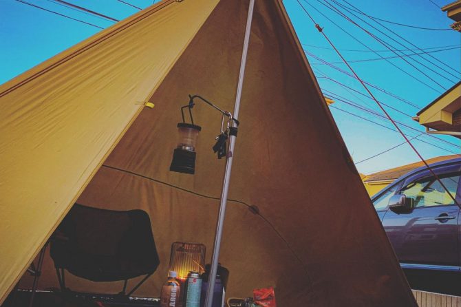 庭デイキャンプ タープ 三角張り[読者投稿記事]