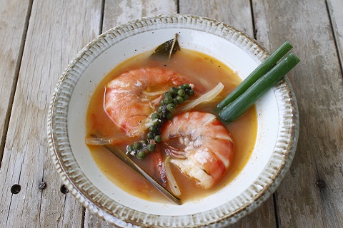 カンボジアのクラタペッパー農園で摘んだ緑胡椒で料理する