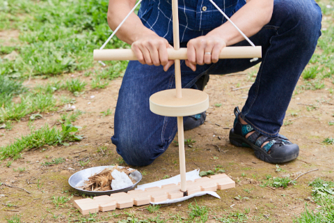 弥生人もやっていた「舞錐(まいぎり)法」の火起こしに挑戦