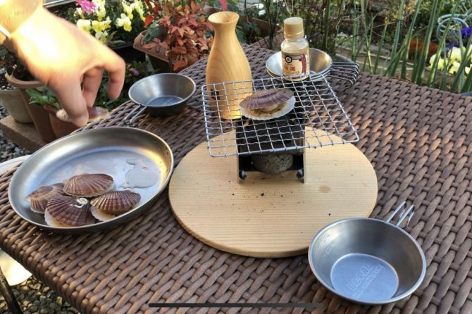 ステンレスミニ焚き火台でベビーホタテを焼いてみた[読者投稿記事]