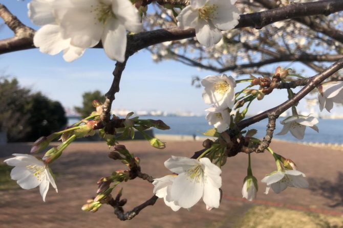 城南島海浜公園の早咲きの桜が二分咲き[読者投稿記事]