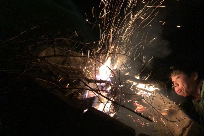 岳人の森キャンプ場で直火の焚火[読者投稿記事]