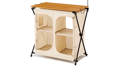 棚を開け閉めできるからスッキリ美しい!竹の天板のキッチンカウンター