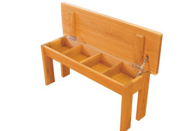 まっすぐな木目が美しい!青森産・ニレの木を磨き上げた収納付きのベンチ。