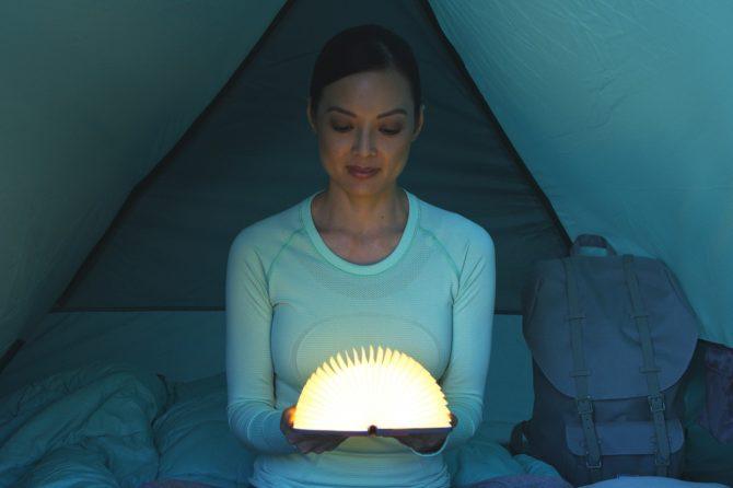 本を開くと優しく光り、充電もできる個性的なポータブルライト