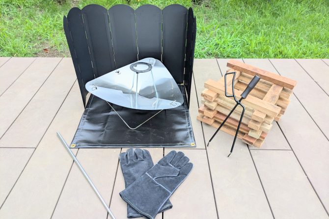 ダイナミックな炎の揺らめき!シートも手袋もセットされた「直火感覚焚火台スターターセット」