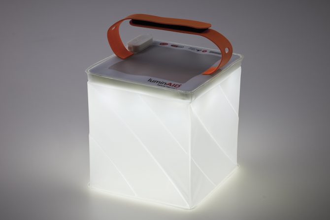 外部機器への充電もできる!ソーラーパネル付きボックス型ライト「ルミンエイド」