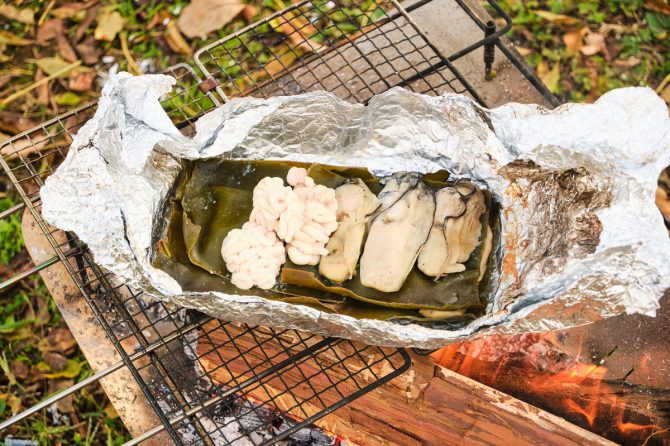 豪快に蒸し焼き、がおいしい!旨味たっぷりの牡蠣と白子の昆布締めホイル焼き