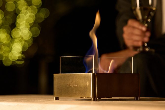 老舗管楽器部品メーカー・山本工業が手掛ける、真鍮の美しさが目を引くバイオエタノールランプ