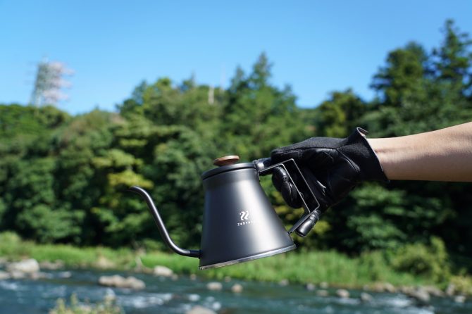 焚き火でコーヒーを淹れるならコレ!ドリップケトル&難燃グローブ