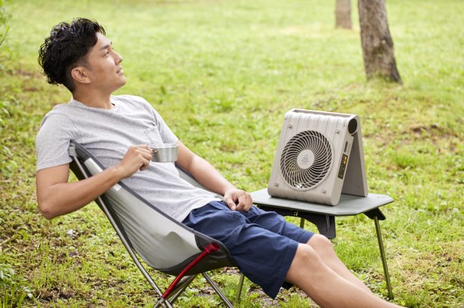 暑いほど実力を発揮する「ソーラーパネル」付きファン。充電にも便利ですよ