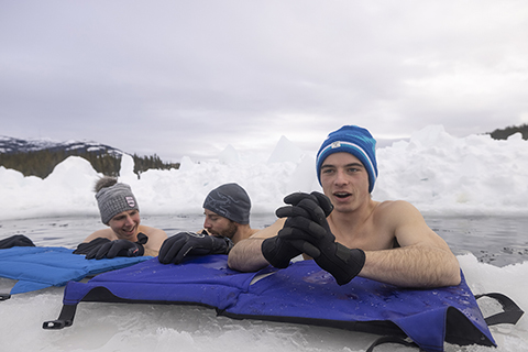 春は間近?ユーコンの凍った湖で寒中水泳!